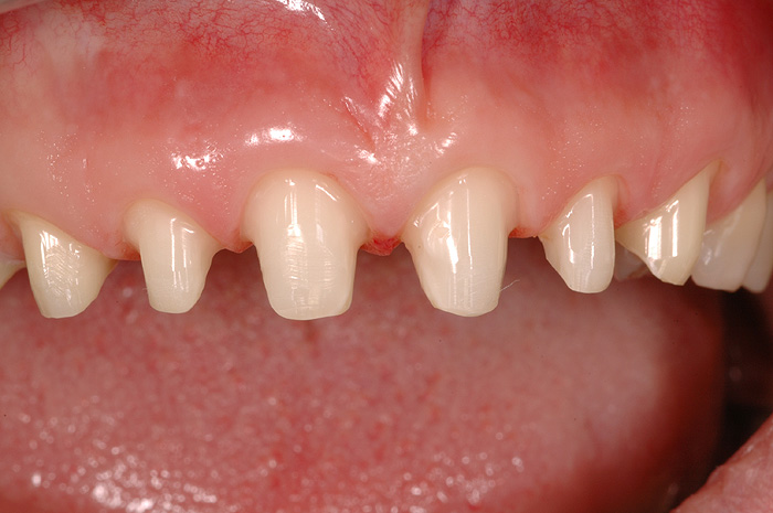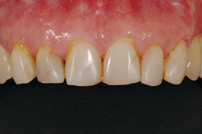Manchmal ist es auch notwendig im Bereich des Zahnfleisches (rote Ästhetik) Korrekturen vorzunehmen. Insbesondere bei einem Defizit an Weichgewebe, bei einem unregelmässigem Zahnfleischverlauf oder bei Rezessionen im Zahnhalsbereich (z.B. nach kieferorthopädischen Behandlungen oder durch ein Putztrauma mit harter Zahnbürste). Diese Zahnfleischkorrekturen werden mittels eines mikrochirurgischen Eingriffes vorgenommen. In schwierigen Fällen muss vom Gaumen ein Zahnfleisch-Transplantat entnommen werden und auf die entblössten Zahnhälse oder in den Defekt transplantiert werden.